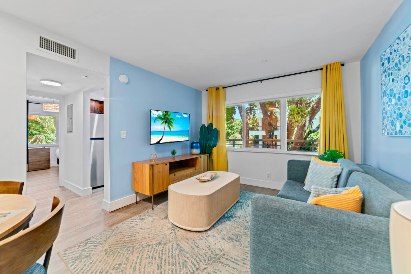 What You'll Enjoy: ⭐️ DIRECT BEACH ACCESS ⭐️ Stylish, contemporary design ⭐️ Convenient self check-in with a smart lock ⭐️ Complimentary parking in parking lot ⭐️ High speed Wi-Fi for streaming and work (150 Mbps download & 140 Mbps Upload) ⭐️ Smart TV and cozy seating for relaxation ⭐️ Top-notch amenities, including an outdoor pool, hot tub, outdoor shower, BBQ pits, and outdoor breakfast area. ⭐️ Elegant and spacious KING SUITE ⭐️Spacious pull out sofa-bed (for 2) ⭐️ Fully-equipped kitchen with appliances like a microwave, oven, coffee maker, and all necessary cookware ⭐️ 5 minute drive to restaurants, bars, and grocery stores To make your stay even more comfortable, we provide a starter kit that includes: 🛁 Bath towels and washcloths 🖐️ Hand towels for the bathroom 🧴 Body wash, hand soap, shampoo & conditioner 🧻 Kitchen towels & toilet paper (3 rolls) 🧼 Laundry detergent & fabric softener 🍽️ Dish soap & dishwasher pods ☕️ Essentials like ground coffee, tea, creamer, sugar, salt, pepper, cooking oil & vinegar 🍳 The kitchen is stocked with a Keurig coffee maker, hot water kettle, toaster, and other essentials for your convenience