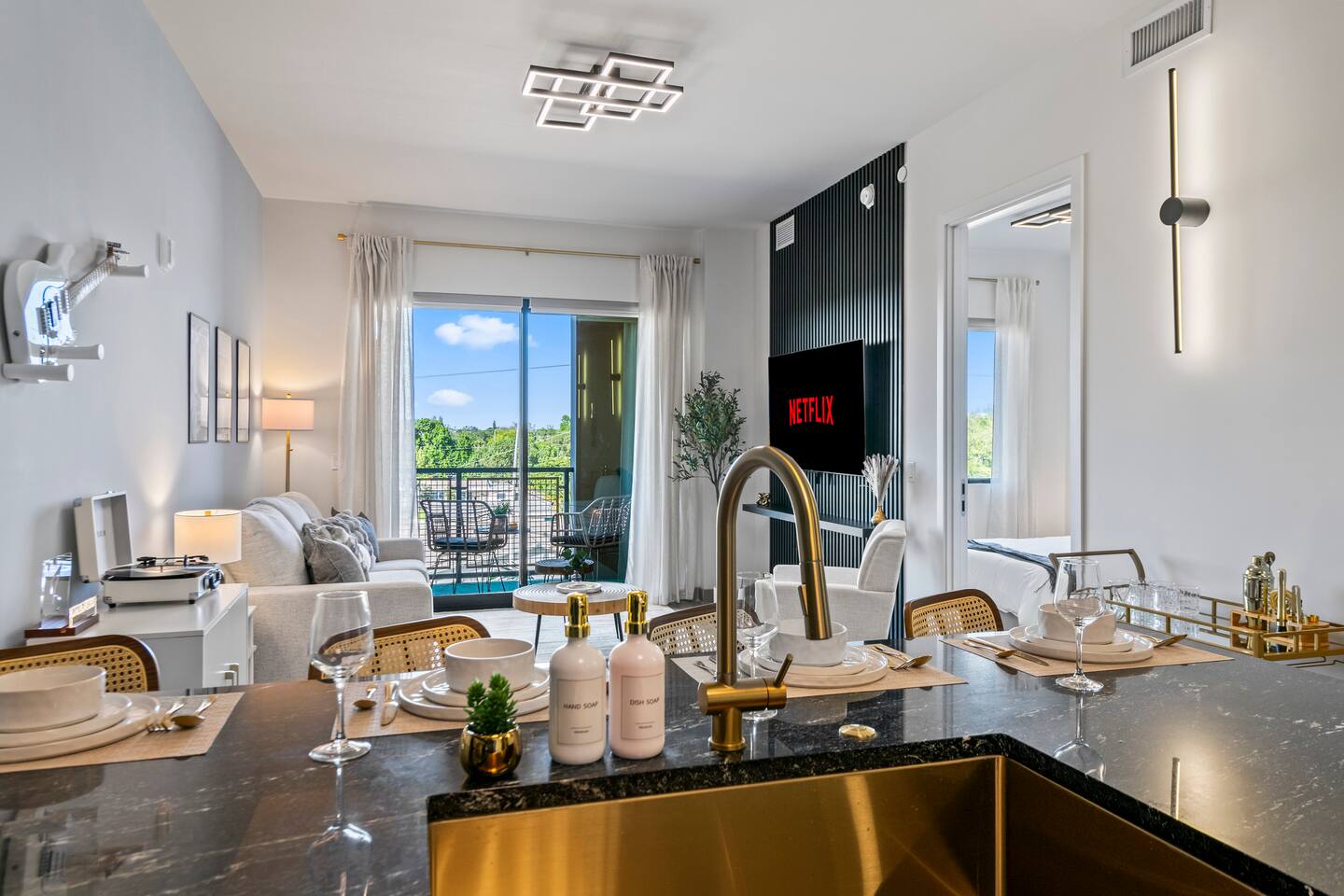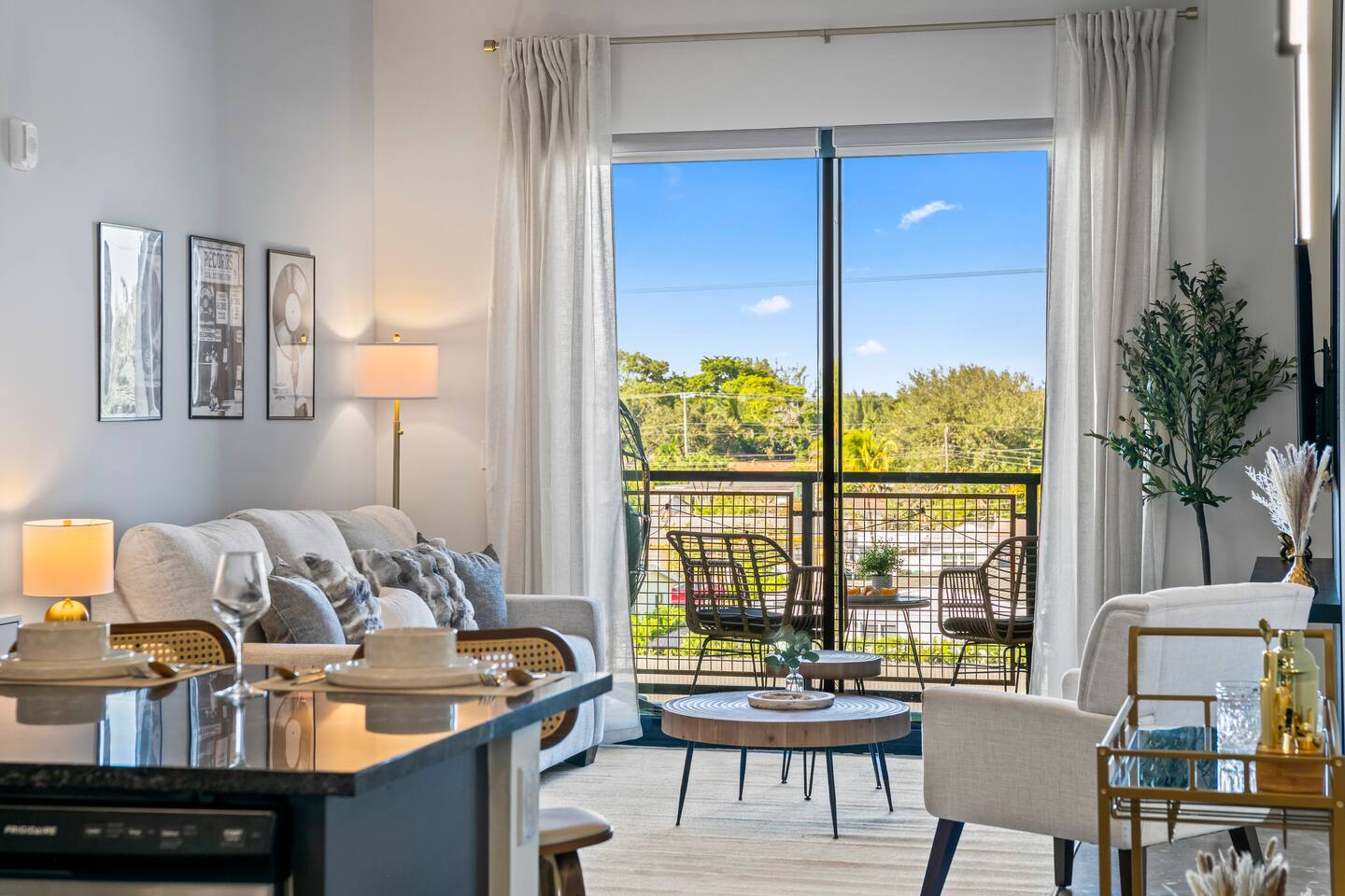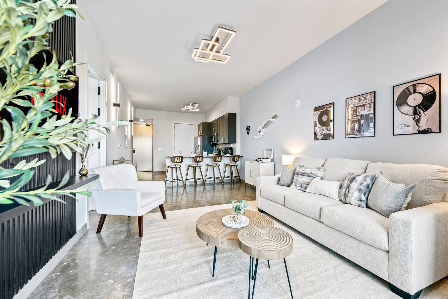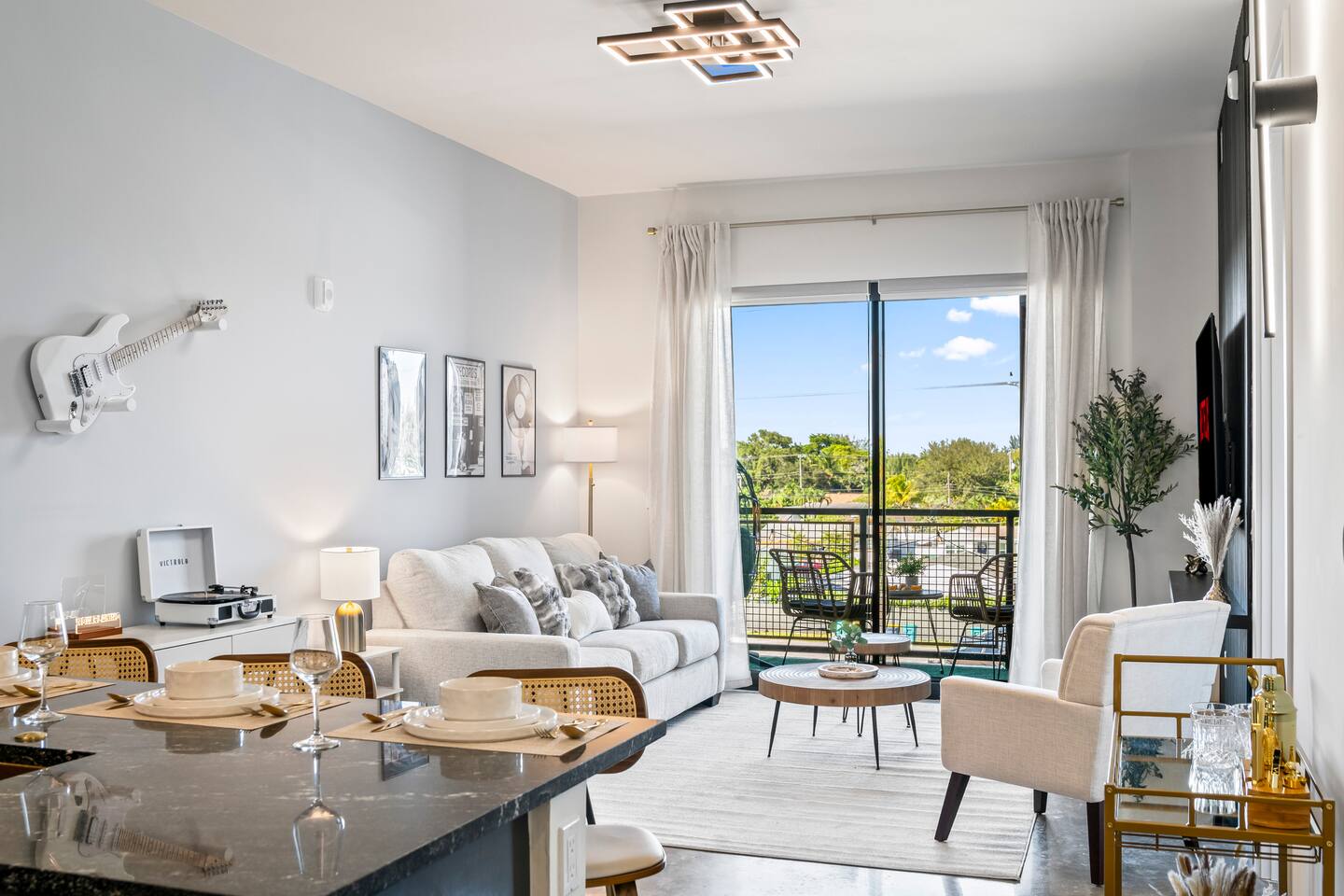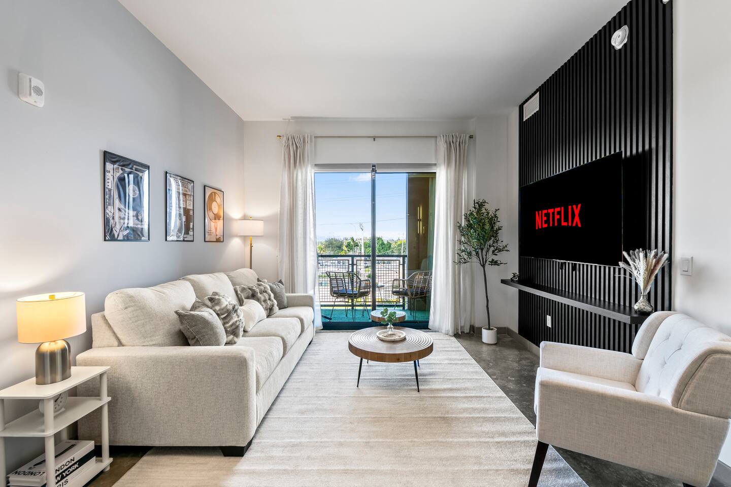 Welcome to Rockstar Retreat 🎶 🌟 ~ Your Private Escape ~ Living Space 🌟 An elegant living room that offers a refined yet inviting atmosphere, perfect for unwinding after a day in the sun. Soft textures, modern accents, and thoughtfully curated décor create an ambiance of effortless luxury. Kickback in front of our 65” smart TV! Bedrooms 🛌 Indulge in comfort within two luxurious bedrooms (1 bed + den) - each appointed with sumptuous linens, plush bedding, and elevated design details to ensure a truly restful night’s sleep. Bathroom 🚿 A spa-inspired bathroom that evokes a boutique hotel experience, featuring spacious walk-in showers, premium toiletries, and fresh, fluffy towels that add a touch of indulgence to your daily routine. Kitchen 🧑🍳 A gourmet kitchen awaits you — fully equipped with high-end appliances, sleek finishes, and everything you need to craft a perfect meal or enjoy your morning espresso in style. Internet 🛜 Stay seamlessly connected with high-speed Wi-Fi and enjoy your favorite shows on the smart TV, all while surrounded by tranquil comfort thanks to central air conditioning throughout. Washer and Dryer 🧼 For extended stays, the convenience of in-suite laundry ensures every detail of your visit feels effortless and refined Private Balcony ☀️ Enjoy your morning coffee on a private balcony. Relax in a cozy egg chair while watching the sun go down. 🌟 Building Amenities 🌟 Rooftop Pool (7 mins away) 🏊♂️ ⭐️ ☀️ While staying, you have free access to the rooftop pool at the G7 Hotel, located across from the Hard Rock. Please note, the rooftop is bar and restaurant is 18+, but the pool is all ages. POOL HOURS: Sunday - Thursday: 7:30 am to 6:00 pm Friday & Saturday: 7:30 am to sundown Fitness Center 🏋️♂️ Maintain your wellness routine in style with access to a fully equipped gym featuring modern equipment and a clean, airy atmosphere. Private Parking 🚗 Enjoy secure, private parking spaces with automatic access—ensuring a smooth and seamless arrival and departure experience. Nearby Attractions 🌆 🏖️ 🎶 ⭐️ FLL Airport – 5 minutes Only minutes away from Fort Lauderdale airport… get off your flight and escape to retreat only minutes away. ⭐️ Dania Beach – 7 minutes Escape the crowds at this serene coastal gem, known for its calm waters and relaxed atmosphere. ⭐️ Seminole Hard Rock Hotel & Casino - 5 minutes Immerse yourself in upscale nightlife, live performances, and exquisite dining experiences at one of Florida’s premier entertainment venues.