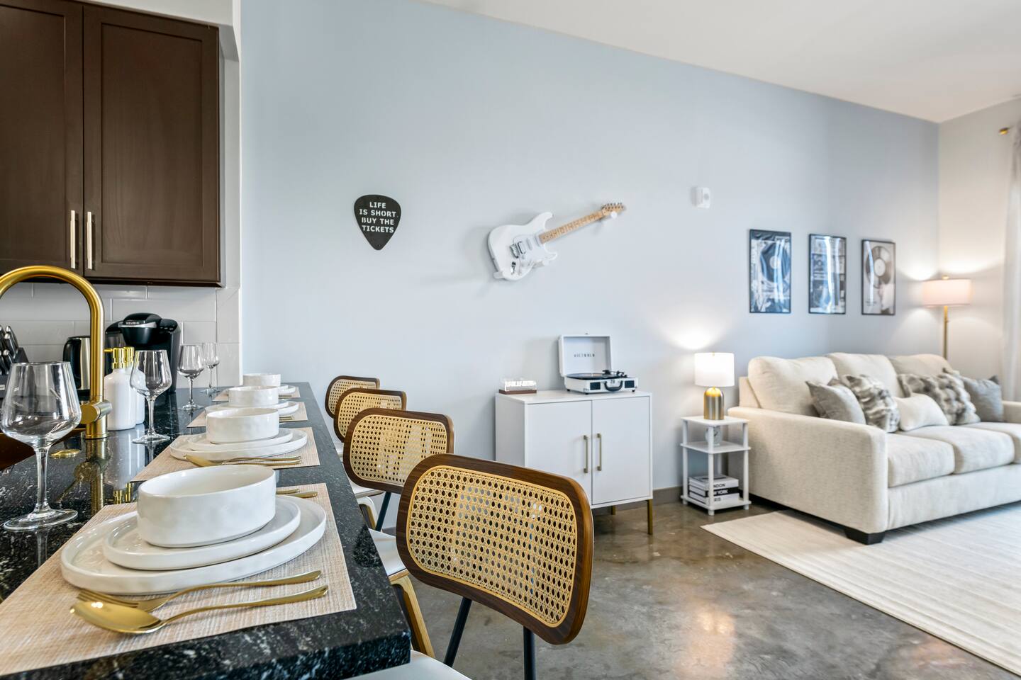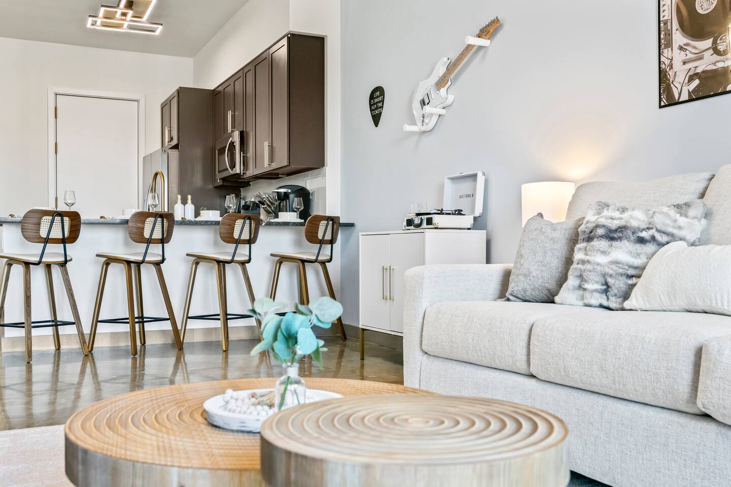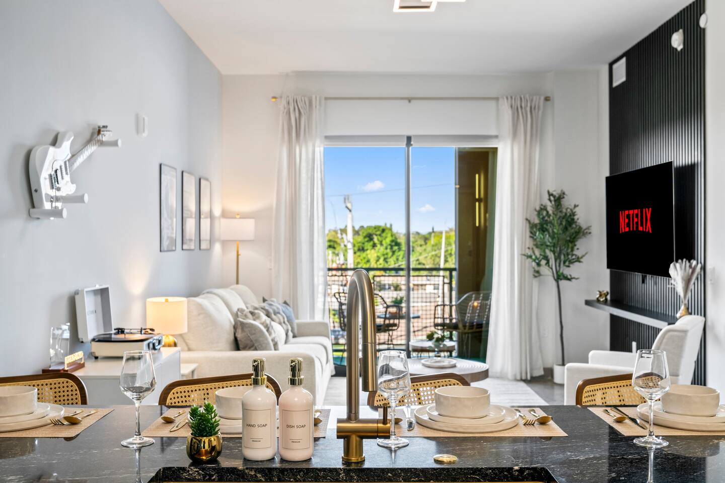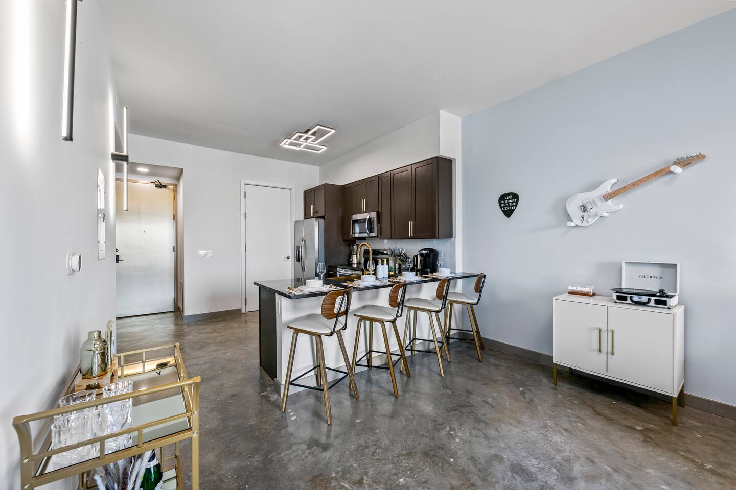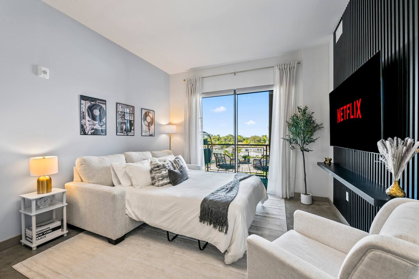 Welcome to Rockstar Retreat 🎶 🌟 ~ Your Private Escape ~ Living Space 🌟 An elegant living room that offers a refined yet inviting atmosphere, perfect for unwinding after a day in the sun. Soft textures, modern accents, and thoughtfully curated décor create an ambiance of effortless luxury. Kickback in front of our 65” smart TV! Bedrooms 🛌 Indulge in comfort within two luxurious bedrooms (1 bed + den) - each appointed with sumptuous linens, plush bedding, and elevated design details to ensure a truly restful night’s sleep. Bathroom 🚿 A spa-inspired bathroom that evokes a boutique hotel experience, featuring spacious walk-in showers, premium toiletries, and fresh, fluffy towels that add a touch of indulgence to your daily routine. Kitchen 🧑🍳 A gourmet kitchen awaits you — fully equipped with high-end appliances, sleek finishes, and everything you need to craft a perfect meal or enjoy your morning espresso in style. Internet 🛜 Stay seamlessly connected with high-speed Wi-Fi and enjoy your favorite shows on the smart TV, all while surrounded by tranquil comfort thanks to central air conditioning throughout. Washer and Dryer 🧼 For extended stays, the convenience of in-suite laundry ensures every detail of your visit feels effortless and refined Private Balcony ☀️ Enjoy your morning coffee on a private balcony. Relax in a cozy egg chair while watching the sun go down. 🌟 Building Amenities 🌟 Rooftop Pool (7 mins away) 🏊♂️ ⭐️ ☀️ While staying, you have free access to the rooftop pool at the G7 Hotel, located across from the Hard Rock. Please note, the rooftop is bar and restaurant is 18+, but the pool is all ages. POOL HOURS: Sunday - Thursday: 7:30 am to 6:00 pm Friday & Saturday: 7:30 am to sundown Fitness Center 🏋️♂️ Maintain your wellness routine in style with access to a fully equipped gym featuring modern equipment and a clean, airy atmosphere. Private Parking 🚗 Enjoy secure, private parking spaces with automatic access—ensuring a smooth and seamless arrival and departure experience. Nearby Attractions 🌆 🏖️ 🎶 ⭐️ FLL Airport – 5 minutes Only minutes away from Fort Lauderdale airport… get off your flight and escape to retreat only minutes away. ⭐️ Dania Beach – 7 minutes Escape the crowds at this serene coastal gem, known for its calm waters and relaxed atmosphere. ⭐️ Seminole Hard Rock Hotel & Casino - 5 minutes Immerse yourself in upscale nightlife, live performances, and exquisite dining experiences at one of Florida’s premier entertainment venues.