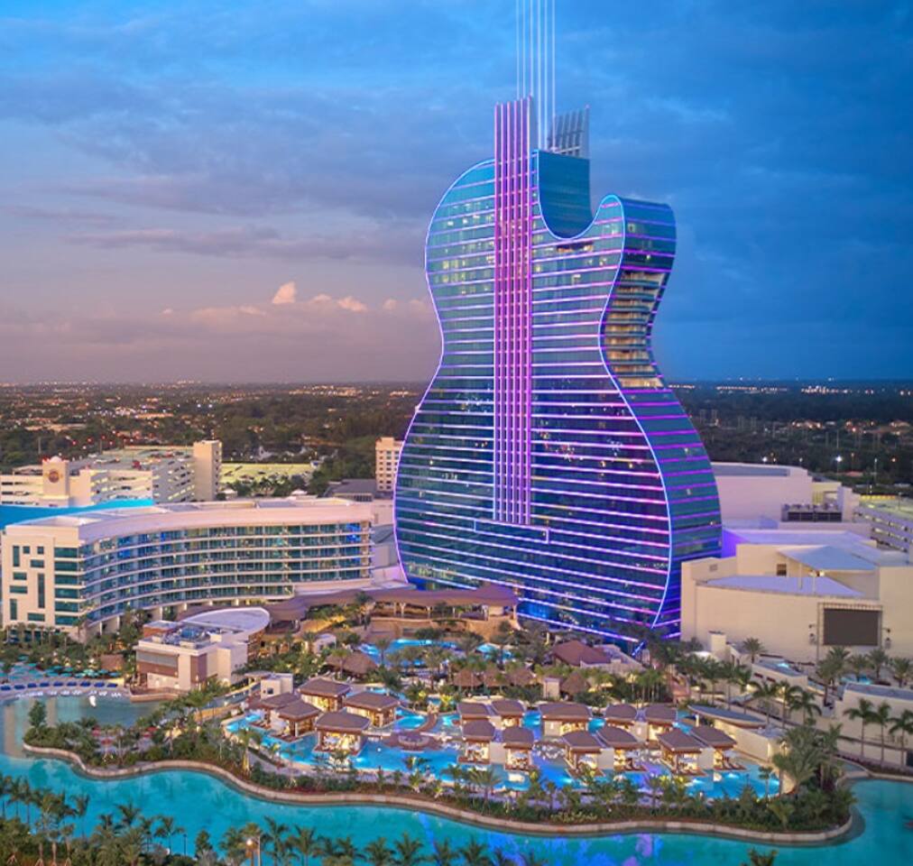 Only minutes from the Hard Rock Hotel, this music-inspired 2-bedroom condo hits all the right notes with sleek design, vibrant decor, and natural light. Enjoy premium amenities like a fitness center, free parking, and VIP rooftop pool access at the Luxury G7 Hotel that’s directly across from the Hard Rock Hotel! 8 minutes to Fort Lauderdale Airport and Dania Beach — your stage for an unforgettable stay awaits!