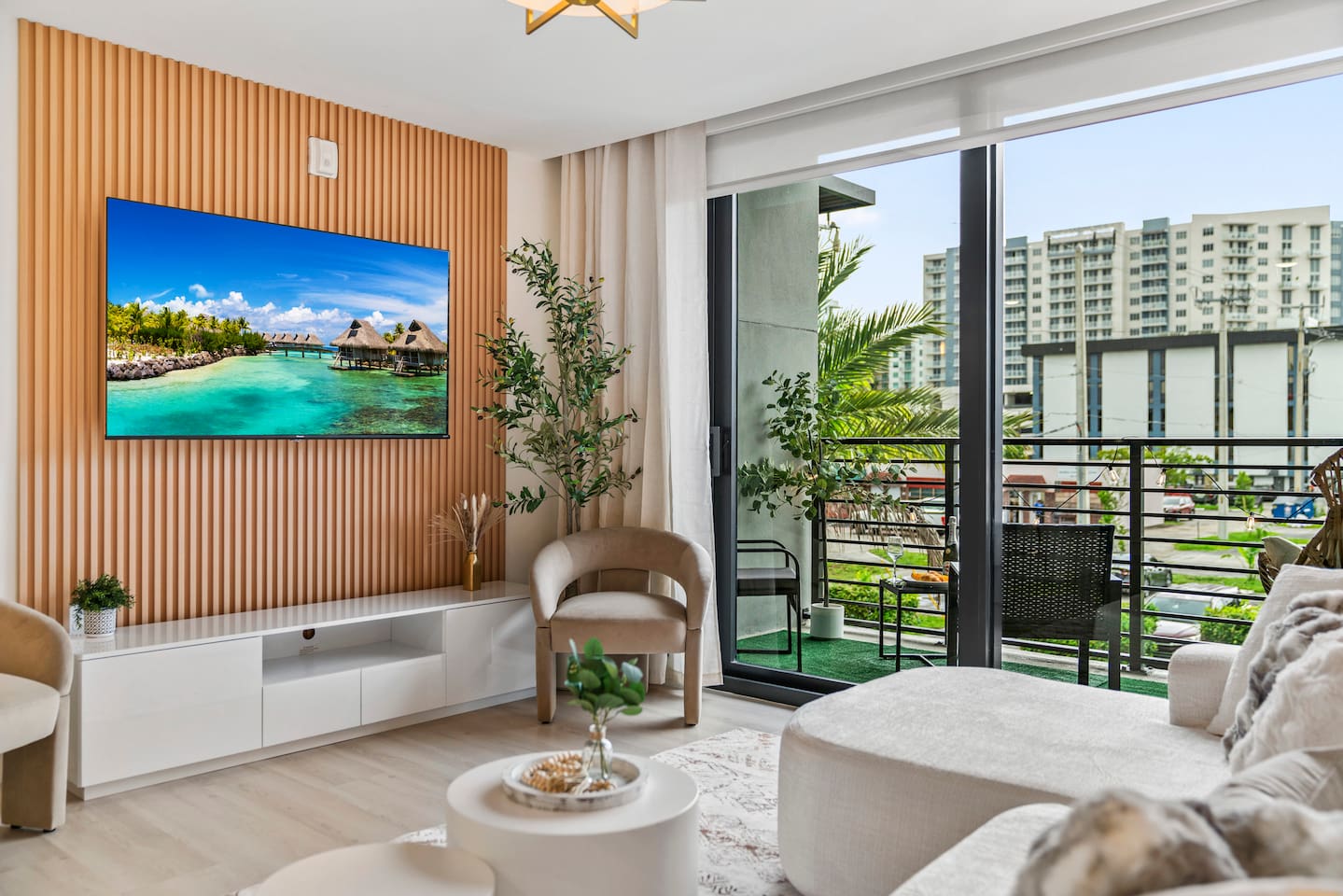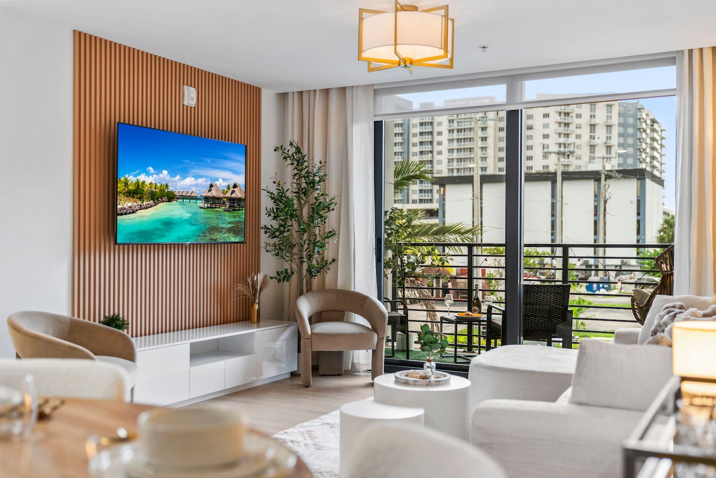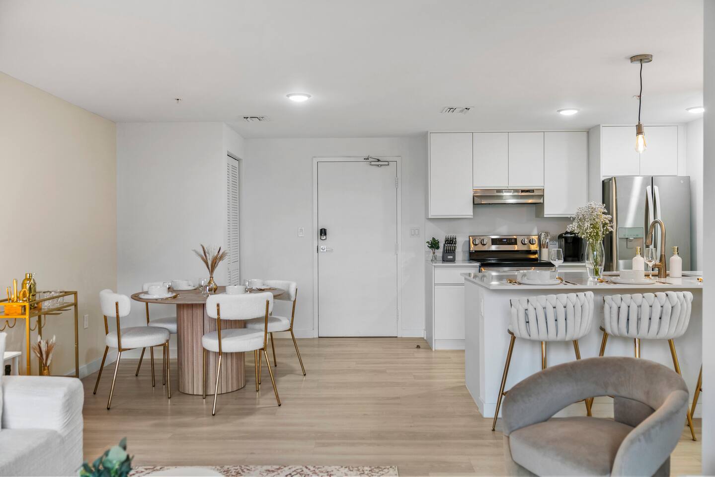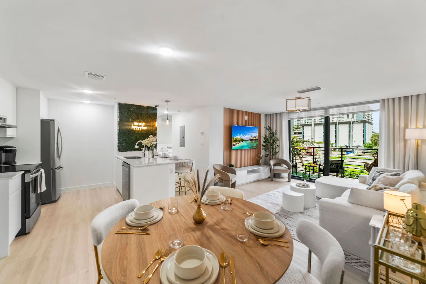 Welcome to Soft Sands 🌟 Your private escape just minutes from Hollywood Beach. Step into Soft Sands - a serene blend of modern luxury and coastal elegance. This refined 2-bedroom, 2-bathroom retreat is thoughtfully designed to offer a peaceful escape—perfect for couples, families, or solo travelers who appreciate style, comfort, and tranquility. Unwind by the rooftop pool with panoramic city views, or relax in your beautifully curated suite, where every detail has been chosen to create an atmosphere of calm sophistication. Conveniently located just 15 minutes from Fort Lauderdale Airport and 25 minutes from Miami International Airport, this getaway offers both ease and exclusivity. 🌟Your Private Escape 🌟 Living Space 🌟 An elegant living room that offers a refined yet inviting atmosphere, perfect for unwinding after a day in the sun. Soft textures, modern accents, and thoughtfully curated décor create an ambiance of effortless luxury. Kickback in front of our 58” smart TV! Bedrooms 🛌 Indulge in comfort within two KING bedrooms, each appointed with plush bedding, and elevated design details to ensure a truly restful night’s sleep. Bathrooms 🚿 Two spa-inspired bathrooms evoke a boutique hotel experience, featuring spacious walk-in showers, premium toiletries, and fresh, fluffy towels that add a touch of indulgence to your daily routine. Kitchen 🧑🍳 A gourmet kitchen awaits you — fully equipped with high-end appliances, sleek finishes, and everything you need to craft a perfect meal or enjoy your morning espresso in style. Internet 🛜 Stay seamlessly connected with high-speed Wi-Fi and enjoy your favorite shows on the smart TV, all while surrounded by tranquil comfort thanks to central air conditioning throughout. Washer and Dryer 🧼 For extended stays, the convenience of in-suite laundry ensures every detail of your visit feels effortless and refined Private Balcony ☀️ Enjoy your morning coffee on a private balcony. Relax in a cozy egg chair while watching the sun go down. 🌟 Building Amenities 🌟 Rooftop Pool & Sun Terrace ⭐️ ☀️ Take in breathtaking panoramic views while cooling off with a refreshing dip. Whether you’re enjoying a quiet morning swim or sunset cocktails, the rooftop terrace offers the perfect backdrop for relaxation and indulgence. Fitness Center 🏋️♂️ Maintain your wellness routine in style with access to a fully equipped gym featuring modern equipment and a clean, airy atmosphere. Private Parking 🚗 Enjoy two secure, private parking spaces with automatic access—ensuring a smooth and seamless arrival and departure experience. Nearby Attractions 🌆 🏖️ 🎶 ⭐️ Hollywood Beach & Broadwalk – 7 minutes Explore a lively stretch of oceanfront dining, boutique shopping, and golden sands—ideal for both leisurely strolls and vibrant beach days. ⭐️ Hallandale Beach – 10 minutes Escape the crowds at this serene coastal gem, known for its calm waters and relaxed atmosphere. ⭐️ Aventura Mall – 15 minutes Discover luxury shopping, gourmet dining, and world-class entertainment all in one sophisticated destination. ⭐️ Seminole Hard Rock Hotel & Casino Immerse yourself in upscale nightlife, live performances, and exquisite dining experiences at one of Florida’s premier entertainment venues. ⭐️ Miami & Fort Lauderdale Effortlessly explore two of Florida’s most iconic cities—each offering its own unique blend of culture, cuisine, and coastal charm