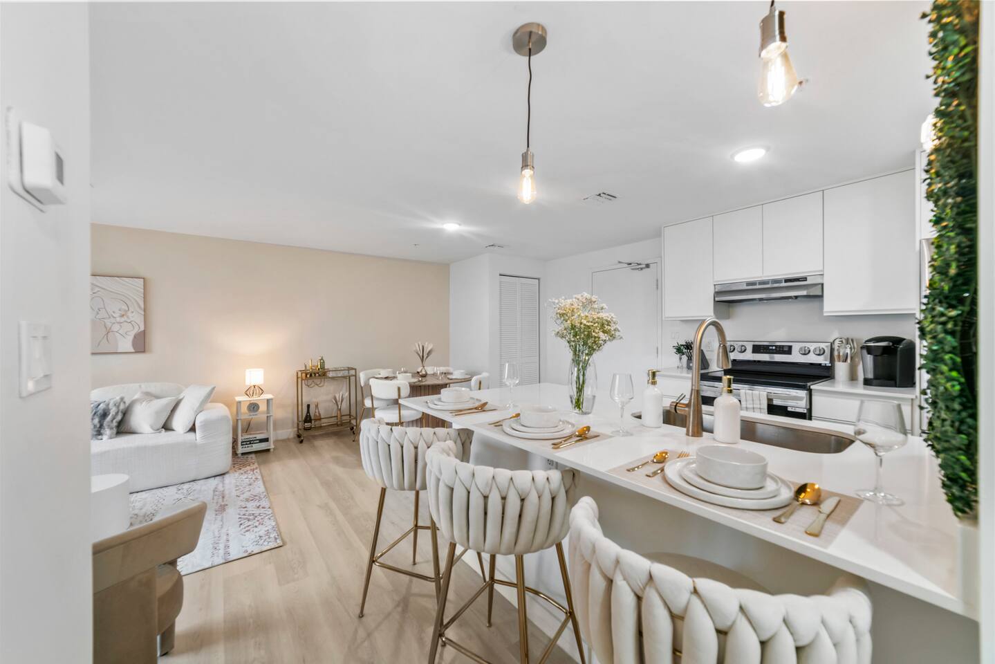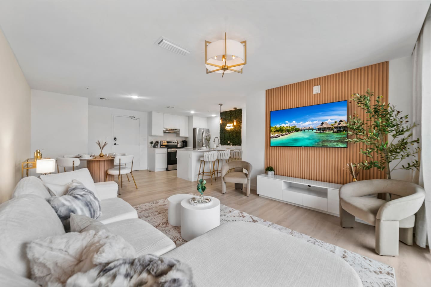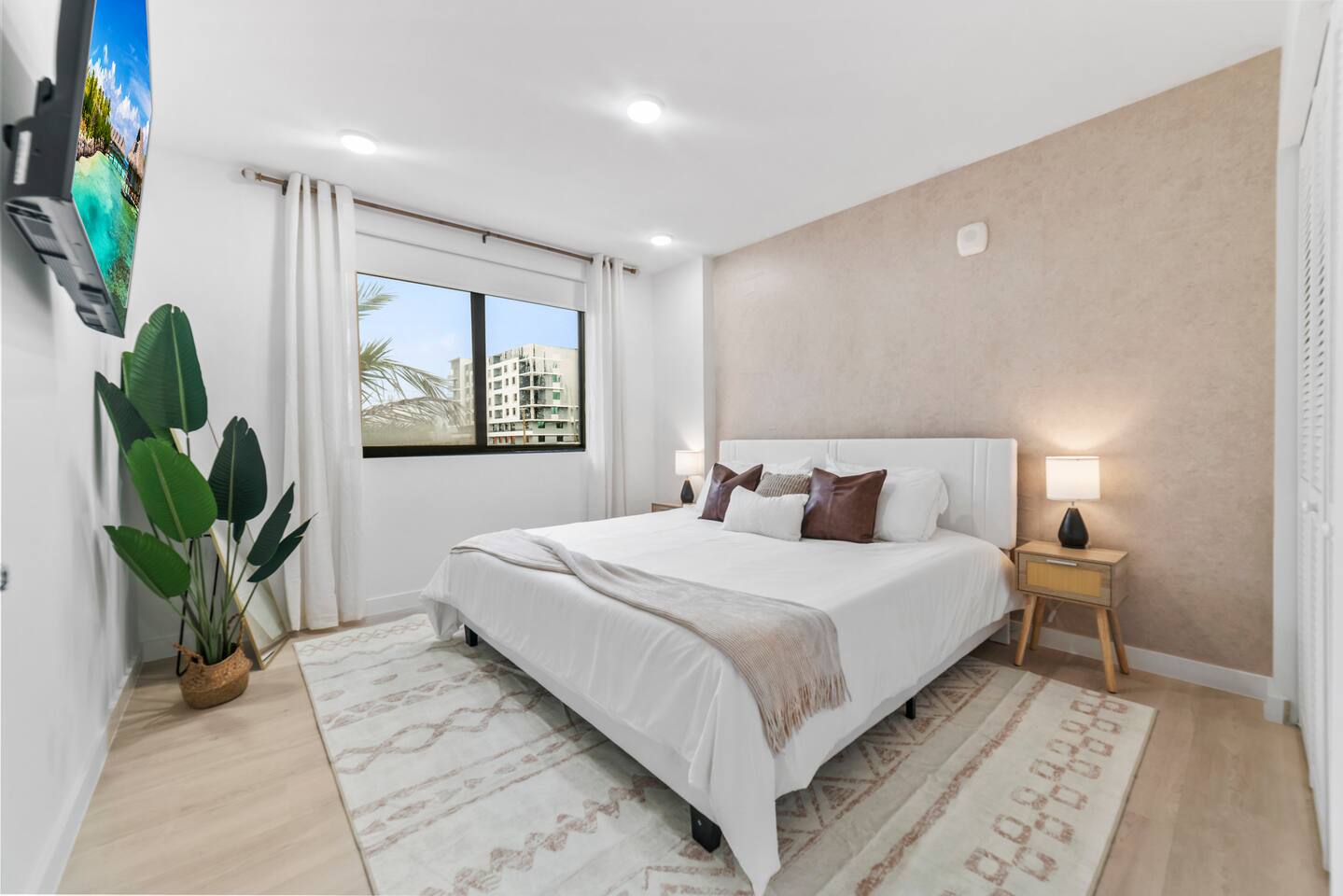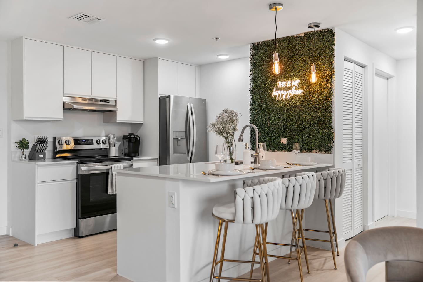 Welcome to Soft Sands 🌟 Your private escape just minutes from Hollywood Beach. Step into Soft Sands - a serene blend of modern luxury and coastal elegance. This refined 2-bedroom, 2-bathroom retreat is thoughtfully designed to offer a peaceful escape—perfect for couples, families, or solo travelers who appreciate style, comfort, and tranquility. Unwind by the rooftop pool with panoramic city views, or relax in your beautifully curated suite, where every detail has been chosen to create an atmosphere of calm sophistication. Conveniently located just 15 minutes from Fort Lauderdale Airport and 25 minutes from Miami International Airport, this getaway offers both ease and exclusivity. 🌟Your Private Escape 🌟 Living Space 🌟 An elegant living room that offers a refined yet inviting atmosphere, perfect for unwinding after a day in the sun. Soft textures, modern accents, and thoughtfully curated décor create an ambiance of effortless luxury. Kickback in front of our 58” smart TV! Bedrooms 🛌 Indulge in comfort within two KING bedrooms, each appointed with plush bedding, and elevated design details to ensure a truly restful night’s sleep. Bathrooms 🚿 Two spa-inspired bathrooms evoke a boutique hotel experience, featuring spacious walk-in showers, premium toiletries, and fresh, fluffy towels that add a touch of indulgence to your daily routine. Kitchen 🧑🍳 A gourmet kitchen awaits you — fully equipped with high-end appliances, sleek finishes, and everything you need to craft a perfect meal or enjoy your morning espresso in style. Internet 🛜 Stay seamlessly connected with high-speed Wi-Fi and enjoy your favorite shows on the smart TV, all while surrounded by tranquil comfort thanks to central air conditioning throughout. Washer and Dryer 🧼 For extended stays, the convenience of in-suite laundry ensures every detail of your visit feels effortless and refined Private Balcony ☀️ Enjoy your morning coffee on a private balcony. Relax in a cozy egg chair while watching the sun go down. 🌟 Building Amenities 🌟 Rooftop Pool & Sun Terrace ⭐️ ☀️ Take in breathtaking panoramic views while cooling off with a refreshing dip. Whether you’re enjoying a quiet morning swim or sunset cocktails, the rooftop terrace offers the perfect backdrop for relaxation and indulgence. Fitness Center 🏋️♂️ Maintain your wellness routine in style with access to a fully equipped gym featuring modern equipment and a clean, airy atmosphere. Private Parking 🚗 Enjoy two secure, private parking spaces with automatic access—ensuring a smooth and seamless arrival and departure experience. Nearby Attractions 🌆 🏖️ 🎶 ⭐️ Hollywood Beach & Broadwalk – 7 minutes Explore a lively stretch of oceanfront dining, boutique shopping, and golden sands—ideal for both leisurely strolls and vibrant beach days. ⭐️ Hallandale Beach – 10 minutes Escape the crowds at this serene coastal gem, known for its calm waters and relaxed atmosphere. ⭐️ Aventura Mall – 15 minutes Discover luxury shopping, gourmet dining, and world-class entertainment all in one sophisticated destination. ⭐️ Seminole Hard Rock Hotel & Casino Immerse yourself in upscale nightlife, live performances, and exquisite dining experiences at one of Florida’s premier entertainment venues. ⭐️ Miami & Fort Lauderdale Effortlessly explore two of Florida’s most iconic cities—each offering its own unique blend of culture, cuisine, and coastal charm