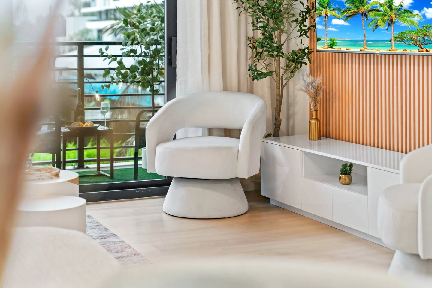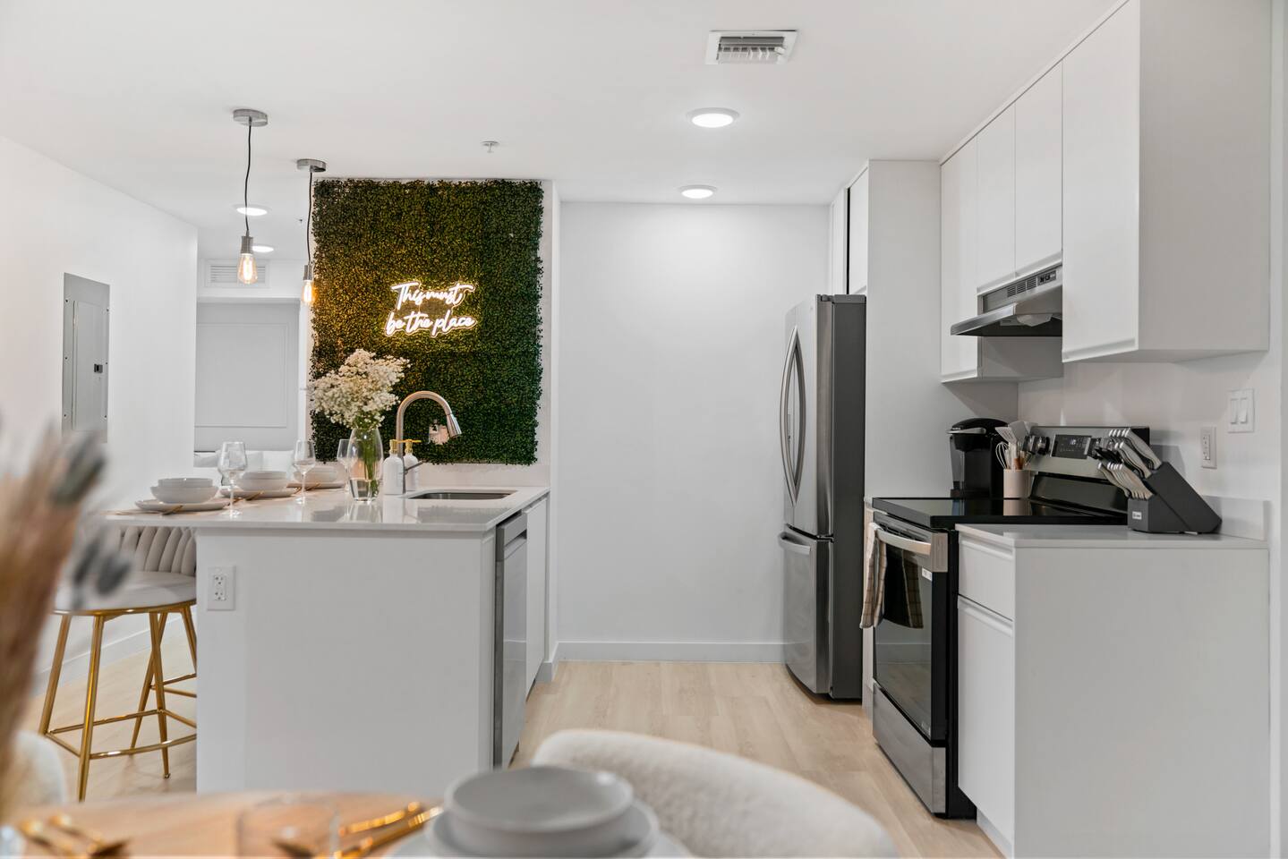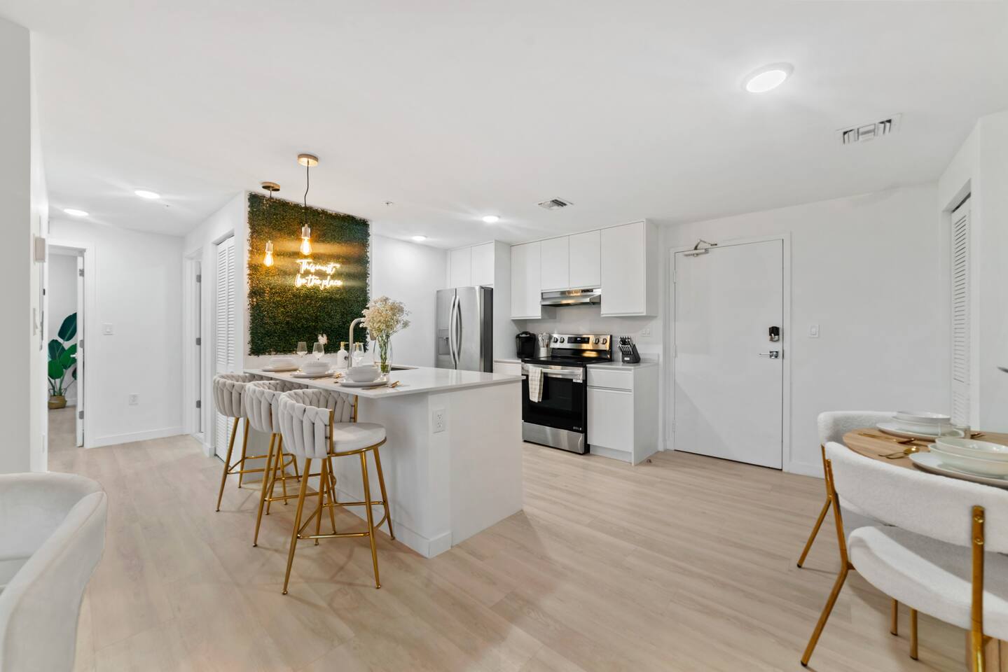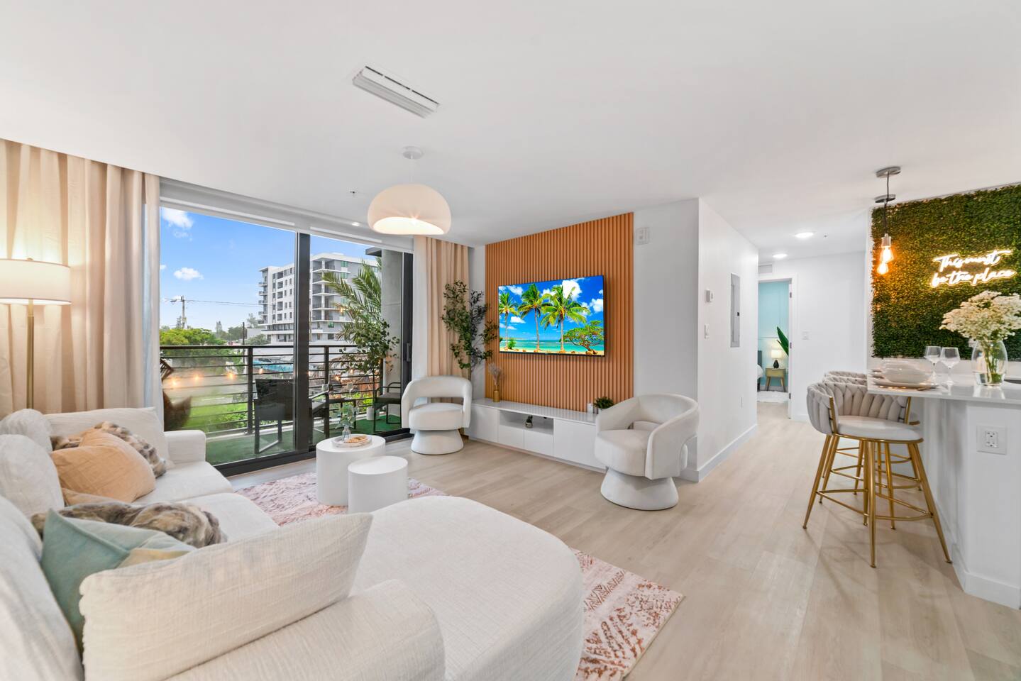 Welcome to Soft Shores 🌟 Your private escape just minutes from Hollywood Beach. Step into Soft Shores - a serene blend of modern luxury and coastal elegance. This refined 2-bedroom, 2-bathroom retreat is thoughtfully designed to offer a peaceful escape—perfect for couples, families, or solo travelers who appreciate style, comfort, and tranquility. Unwind by the rooftop pool with panoramic city views, or relax in your beautifully curated suite, where every detail has been chosen to create an atmosphere of calm sophistication. Conveniently located just 15 minutes from Fort Lauderdale Airport and 25 minutes from Miami International Airport, this getaway offers both ease and exclusivity. 🌟Your Private Escape 🌟 Living Space 🌟 An elegant living room that offers a refined yet inviting atmosphere, perfect for unwinding after a day in the sun. Soft textures, modern accents, and thoughtfully curated décor create an ambiance of effortless luxury. Kickback in front of our 58” smart TV! Bedrooms 🛌 Indulge in comfort within two KING bedrooms, each appointed with sumptuous linens, plush bedding, and elevated design details to ensure a truly restful night’s sleep. Bathrooms 🚿 Two spa-inspired bathrooms evoke a boutique hotel experience, featuring spacious walk-in showers, premium toiletries, and fresh, fluffy towels that add a touch of indulgence to your daily routine. Kitchen 🧑🍳 A gourmet kitchen awaits you — fully equipped with high-end appliances, sleek finishes, and everything you need to craft a perfect meal or enjoy your morning espresso in style. Internet 🛜 Stay seamlessly connected with high-speed Wi-Fi and enjoy your favorite shows on the smart TV, all while surrounded by tranquil comfort thanks to central air conditioning throughout. Washer and Dryer 🧼 For extended stays, the convenience of in-suite laundry ensures every detail of your visit feels effortless and refined Private Balcony ☀️ Enjoy your morning coffee on a private balcony. Relax in a cozy egg chair while watching the sun go down. 🌟 Building Amenities 🌟 Rooftop Pool & Sun Terrace ⭐️ ☀️ Take in breathtaking panoramic views while cooling off with a refreshing dip. Whether you’re enjoying a quiet morning swim or sunset cocktails, the rooftop terrace offers the perfect backdrop for relaxation and indulgence. Fitness Center 🏋️♂️ Maintain your wellness routine in style with access to a fully equipped gym featuring modern equipment and a clean, airy atmosphere. Private Parking 🚗 Enjoy two secure, private parking spaces with automatic access—ensuring a smooth and seamless arrival and departure experience. Nearby Attractions 🌆 🏖️ 🎶 ⭐️ Hollywood Beach & Broadwalk – 7 minutes Explore a lively stretch of oceanfront dining, boutique shopping, and golden sands—ideal for both leisurely strolls and vibrant beach days. ⭐️ Hallandale Beach – 10 minutes Escape the crowds at this serene coastal gem, known for its calm waters and relaxed atmosphere. ⭐️ Aventura Mall – 15 minutes Discover luxury shopping, gourmet dining, and world-class entertainment all in one sophisticated destination. ⭐️ Seminole Hard Rock Hotel & Casino Immerse yourself in upscale nightlife, live performances, and exquisite dining experiences at one of Florida’s premier entertainment venues. ⭐️ Miami & Fort Lauderdale Effortlessly explore two of Florida’s most iconic cities—each offering its own unique blend of culture, cuisine, and coastal charm